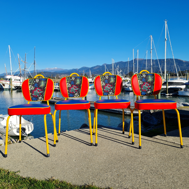 These chair's are beautifully restored. The chrome was badly damaged and peeling so I got Alan knight from Eco Blast to sand blast it and apply a 2pac paint. Paint isn't as tough as chrome, it will mark and scratch if you knock it about. I will supply a small jar for touch up's. Hot YELLOW. Don't they look amazing.