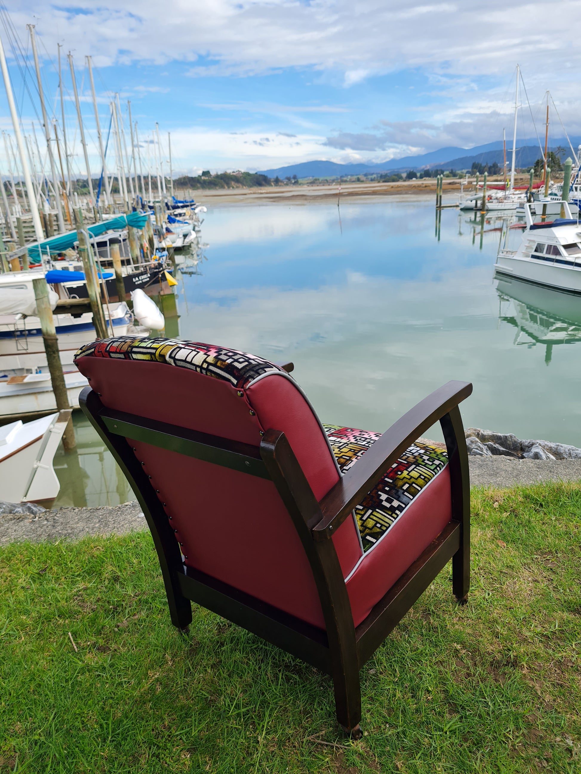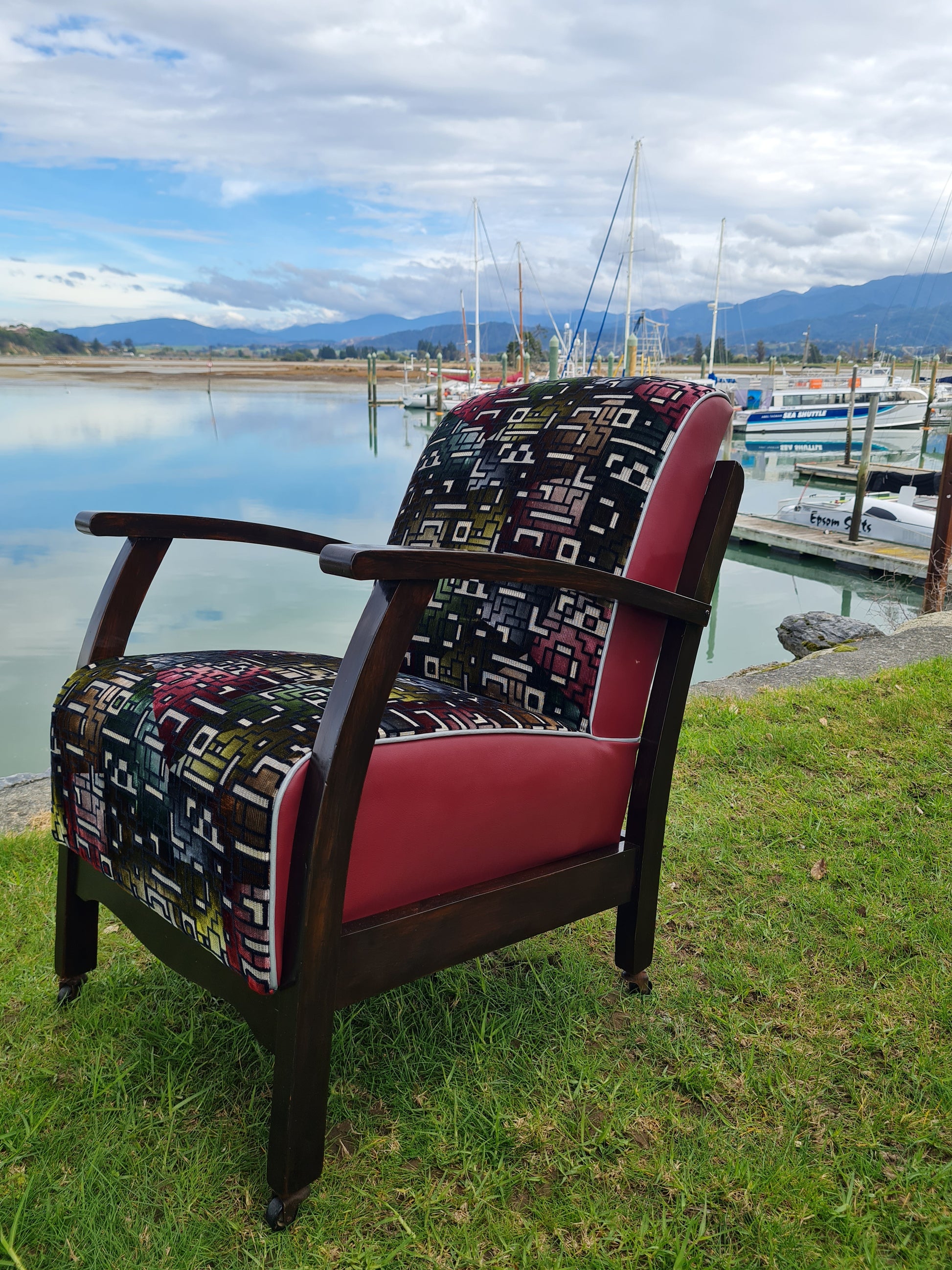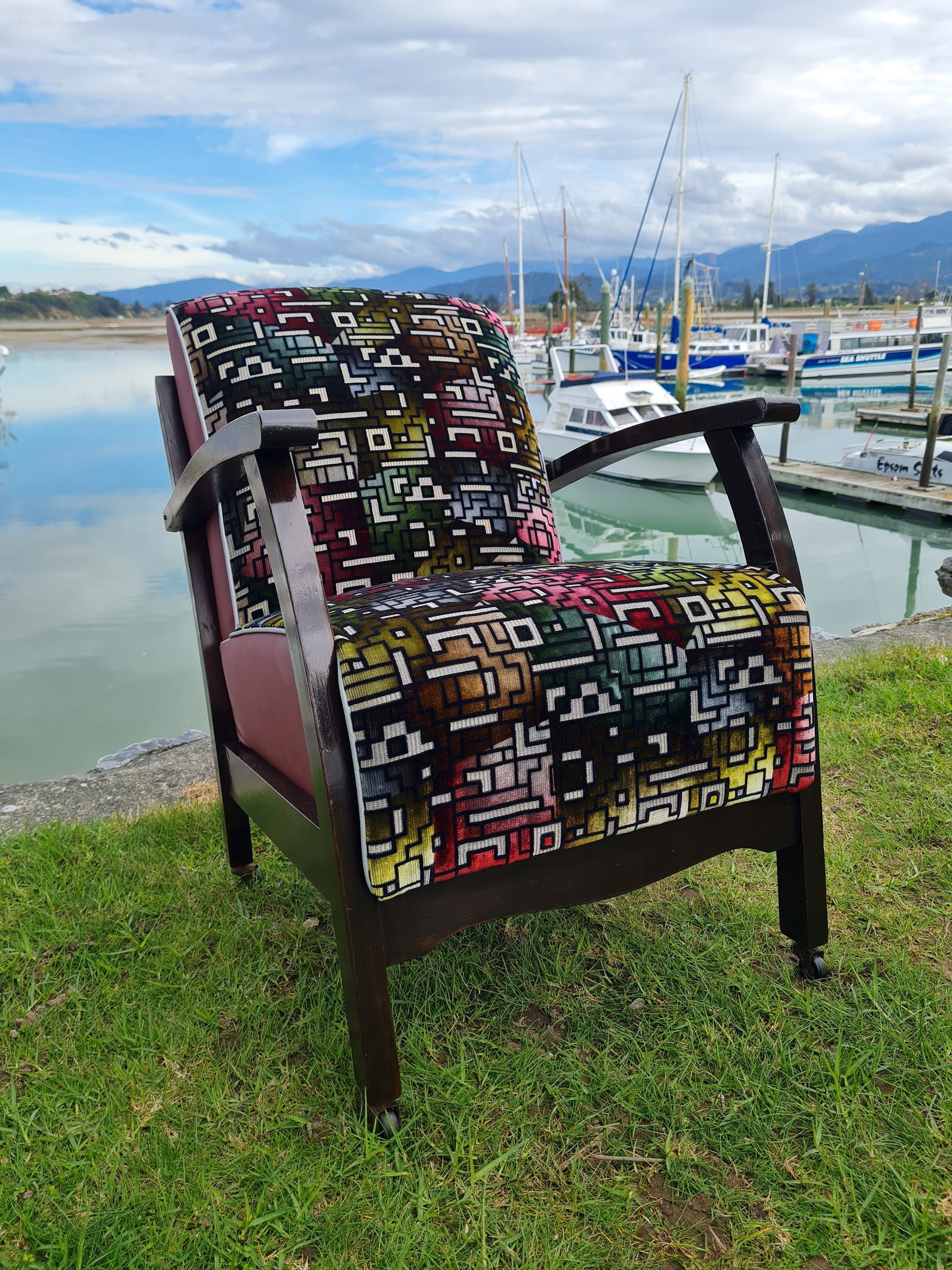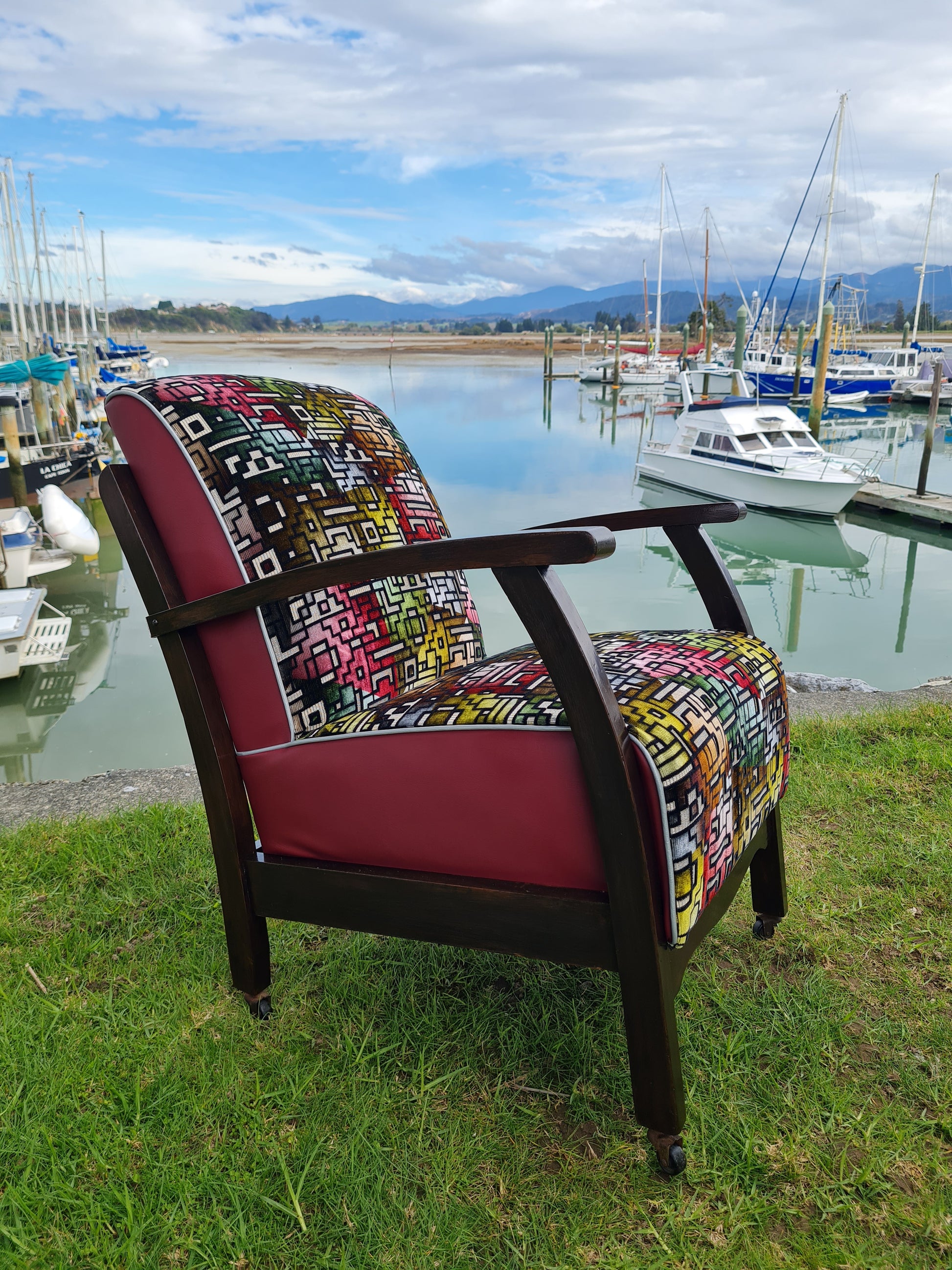 The wood has also been restored by a retired furniture maker. Chair on castors.