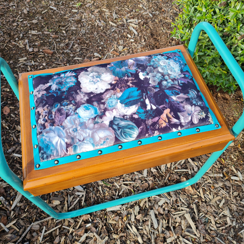 I have upholstered the seating with Warwicks Flower bomb velvet fabric and a marine grade vinyl.