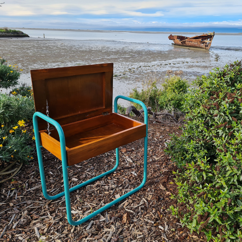 The wooden box compartment was restored from a retired furniture maker here in Motueka.
