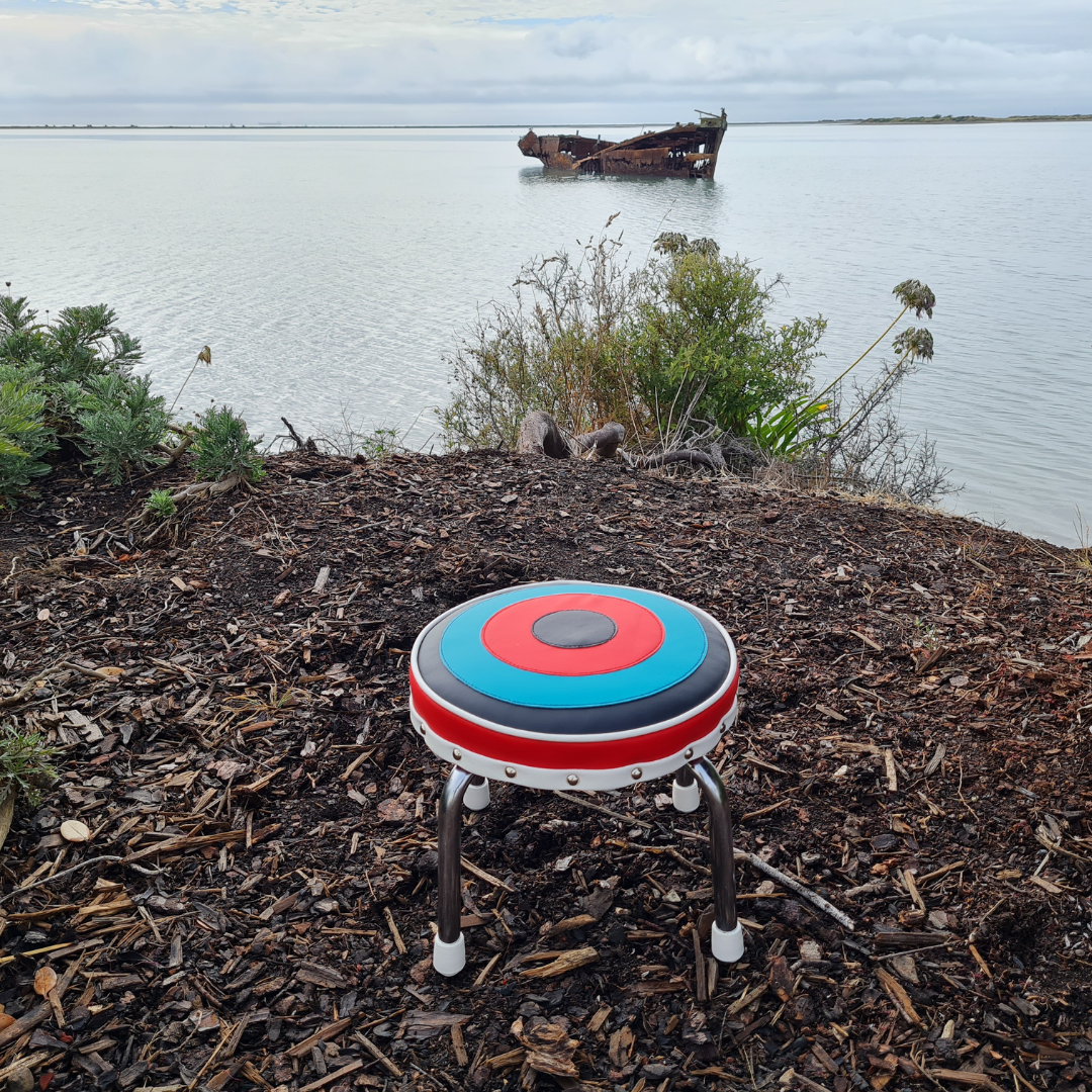 This funky stool - seat has been upcycled from 1960's. The frame has been cleaned. Upholstered in a marine grade vinyl, easy to wipe clean.
