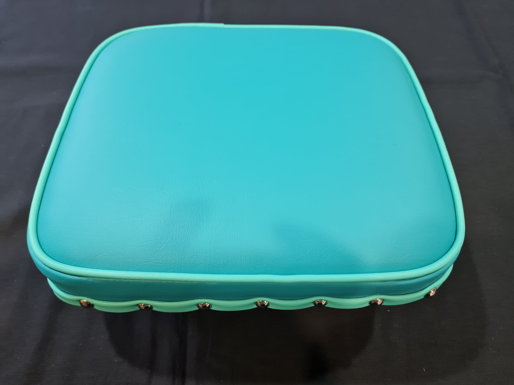 This funky step stool - seat has been upcycled from 1960's for a private commission. The frame has been cleaned, and touched up with metal paint. Upholstered in the stunning Marine Grade vinyl.