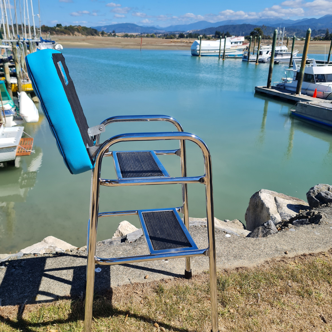 The frame has been cleaned. Upholstered in a marine grade vinyl.