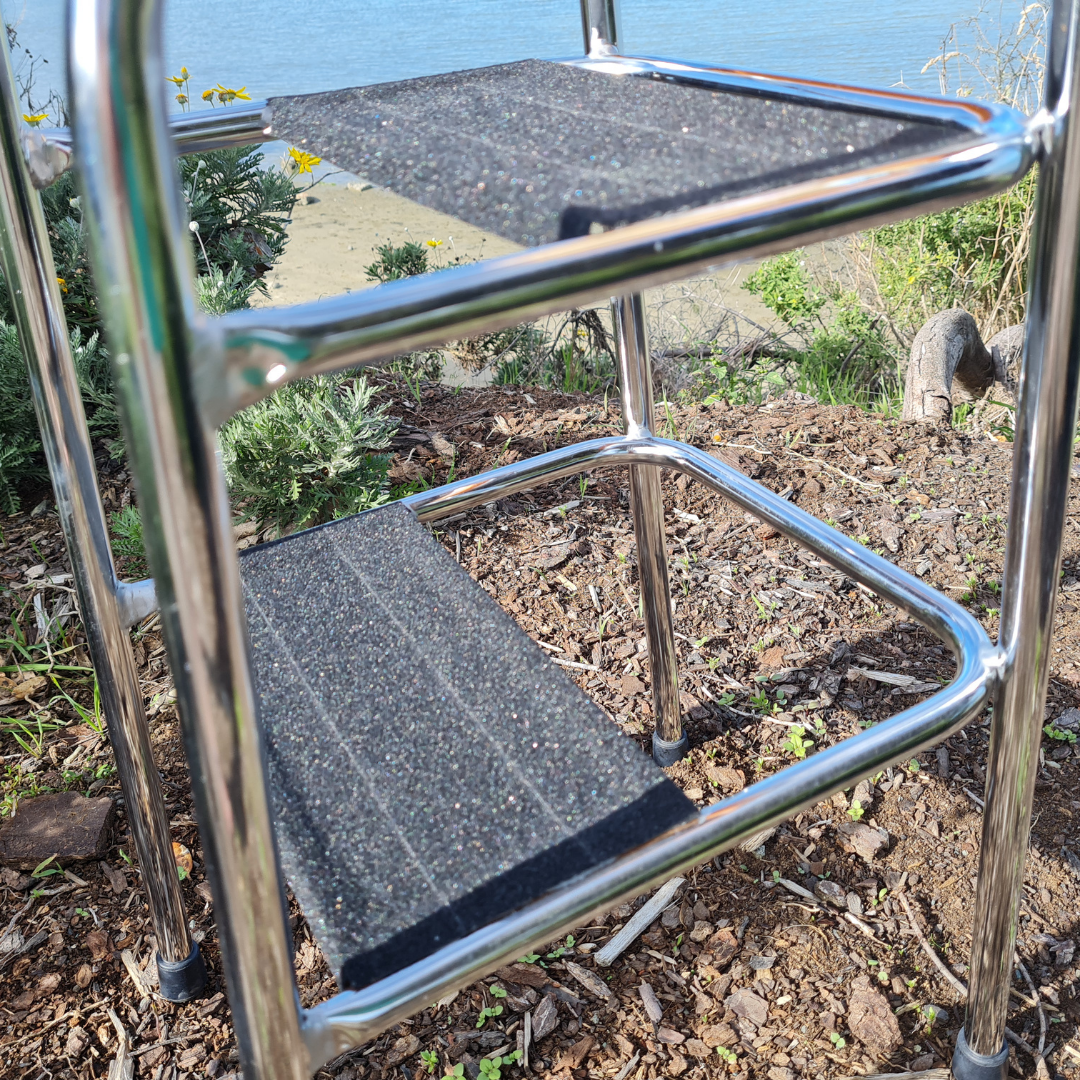 Retro Chrome Step Stool - Seat Flower Bombed - Orange