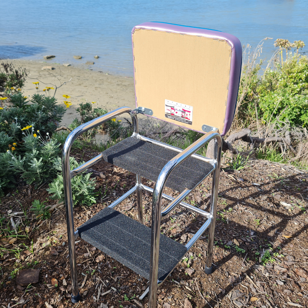 Retro Chrome Step Stool - Seat Flower Bombed Purple
