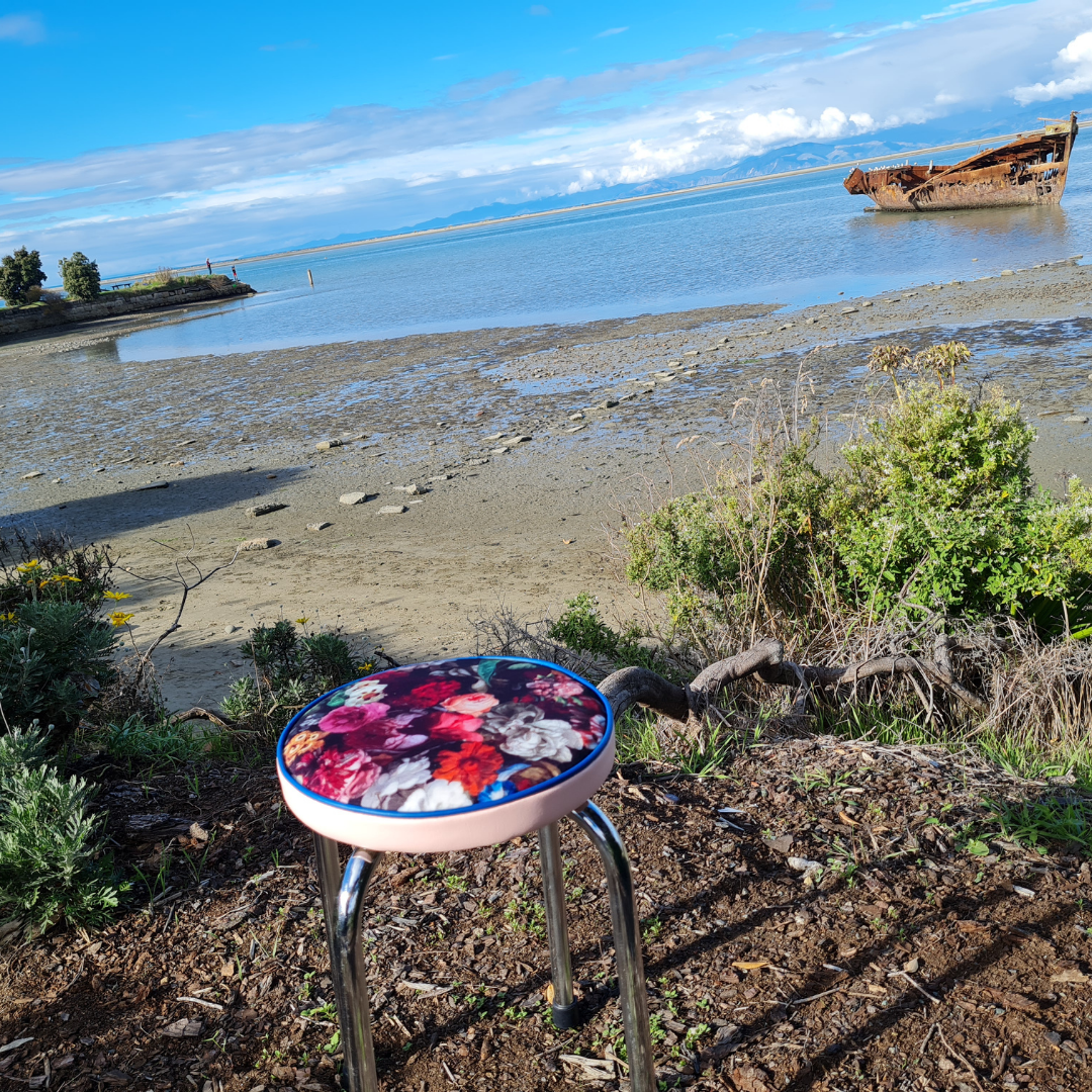 Retro Chrome Stool - Seat - Flower bomb