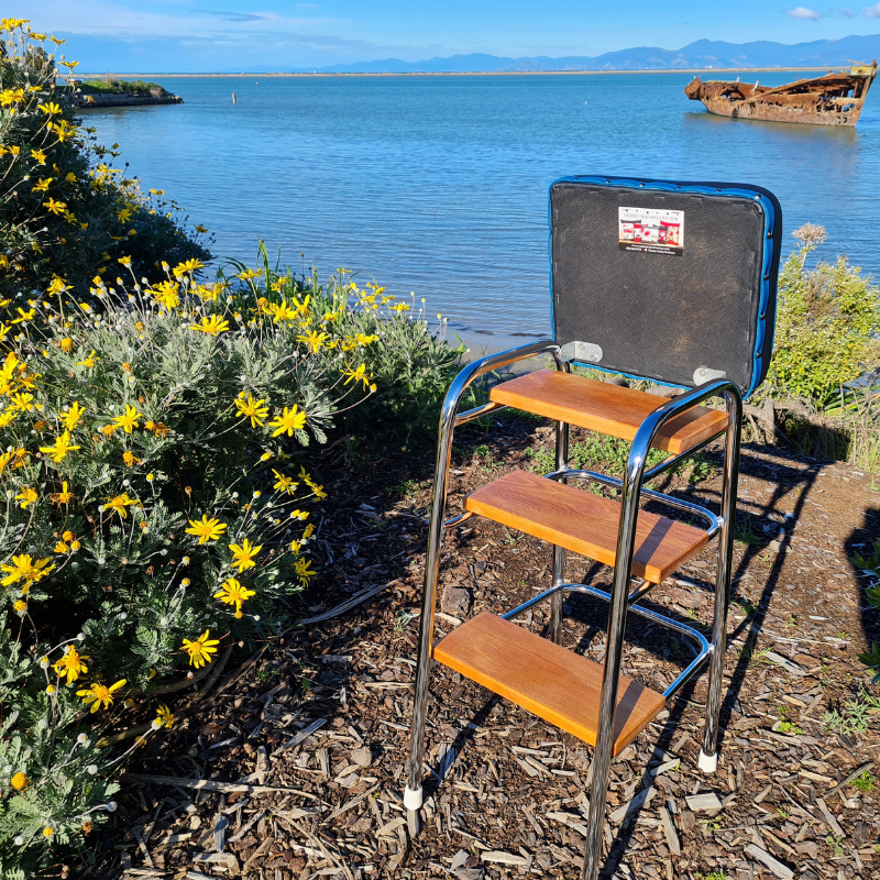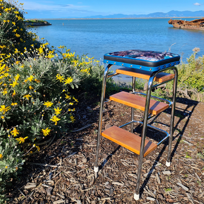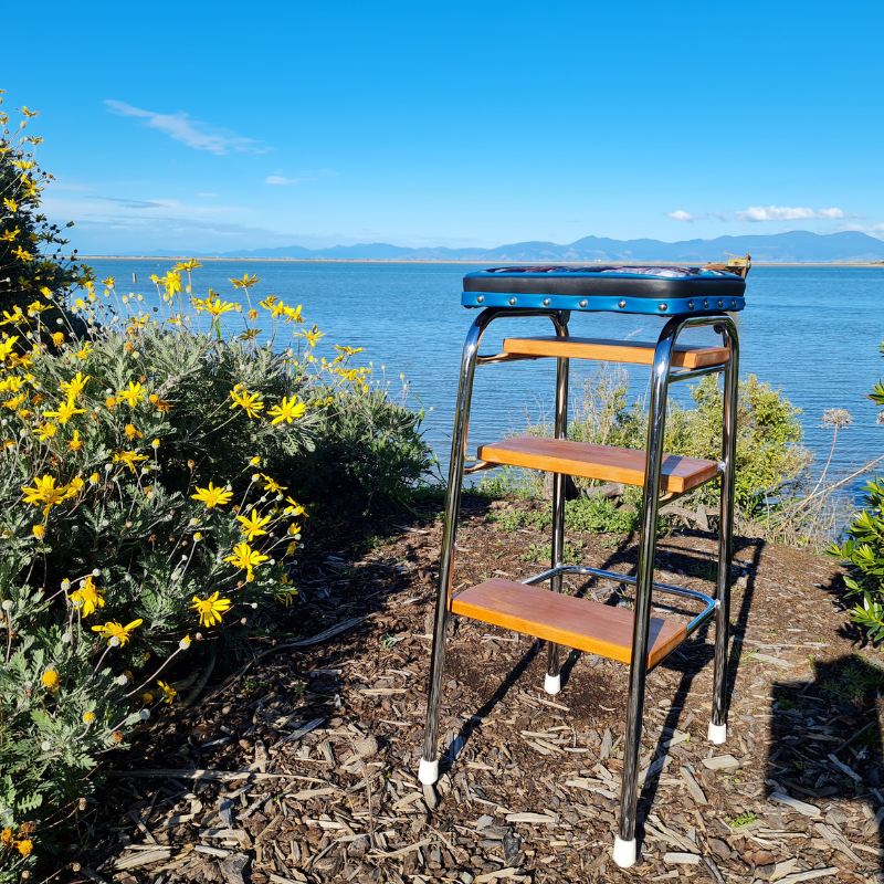 Retro Chrome Stool - Seat - Wooden Steps