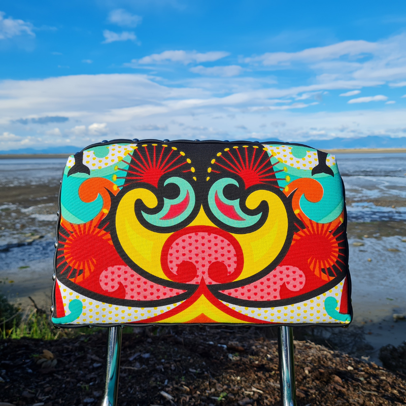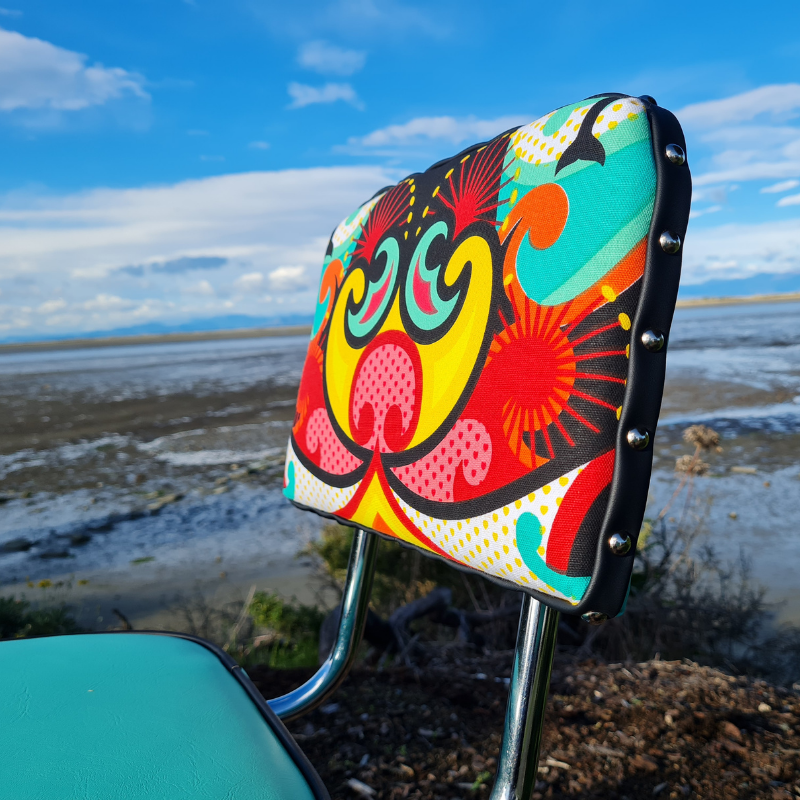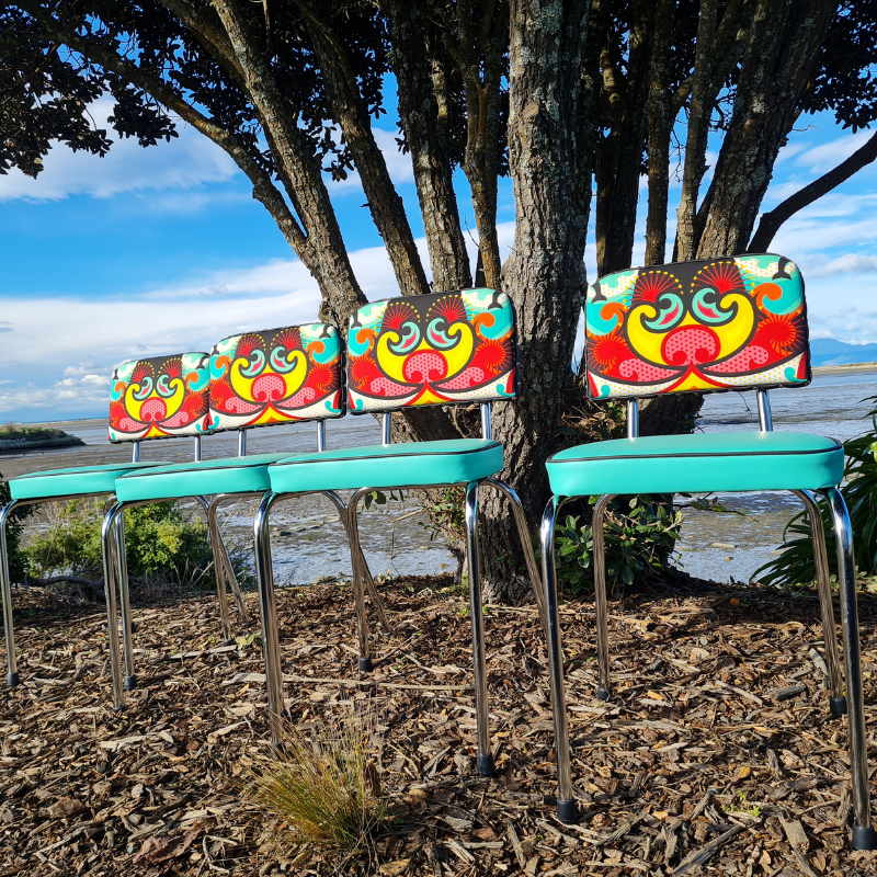 These chair's are beautifully restored using Marine Grade Vinyls and the colourful pattern is a cotton fabric..