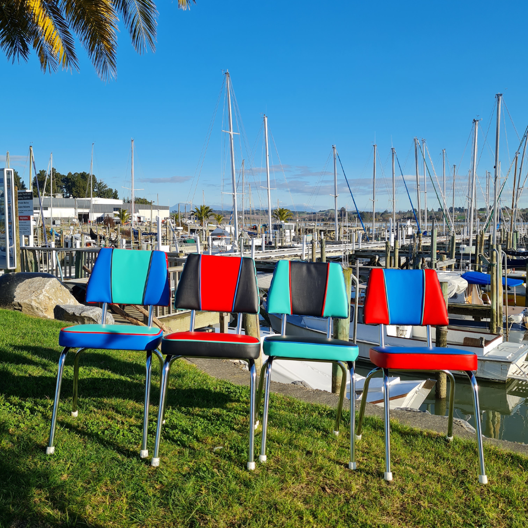 These chairs have been beautifully restored using Marine Grade Vinyl.