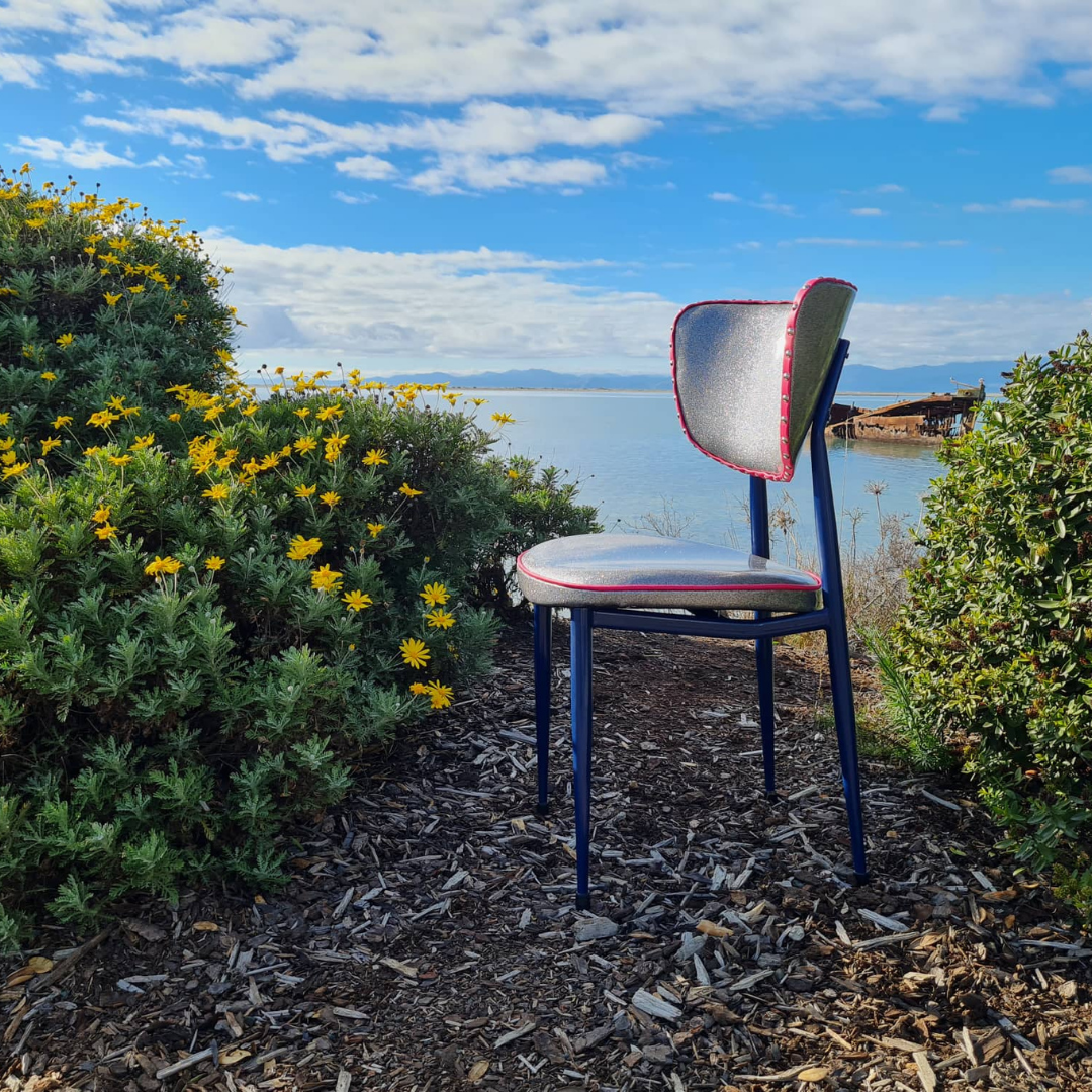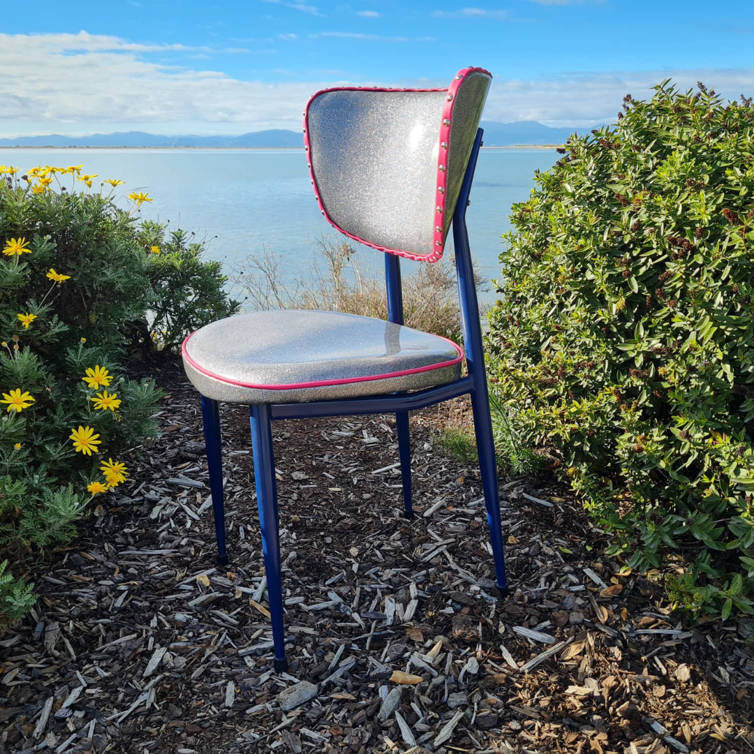 This chair is beautifully restored using Glitter Vinyl.